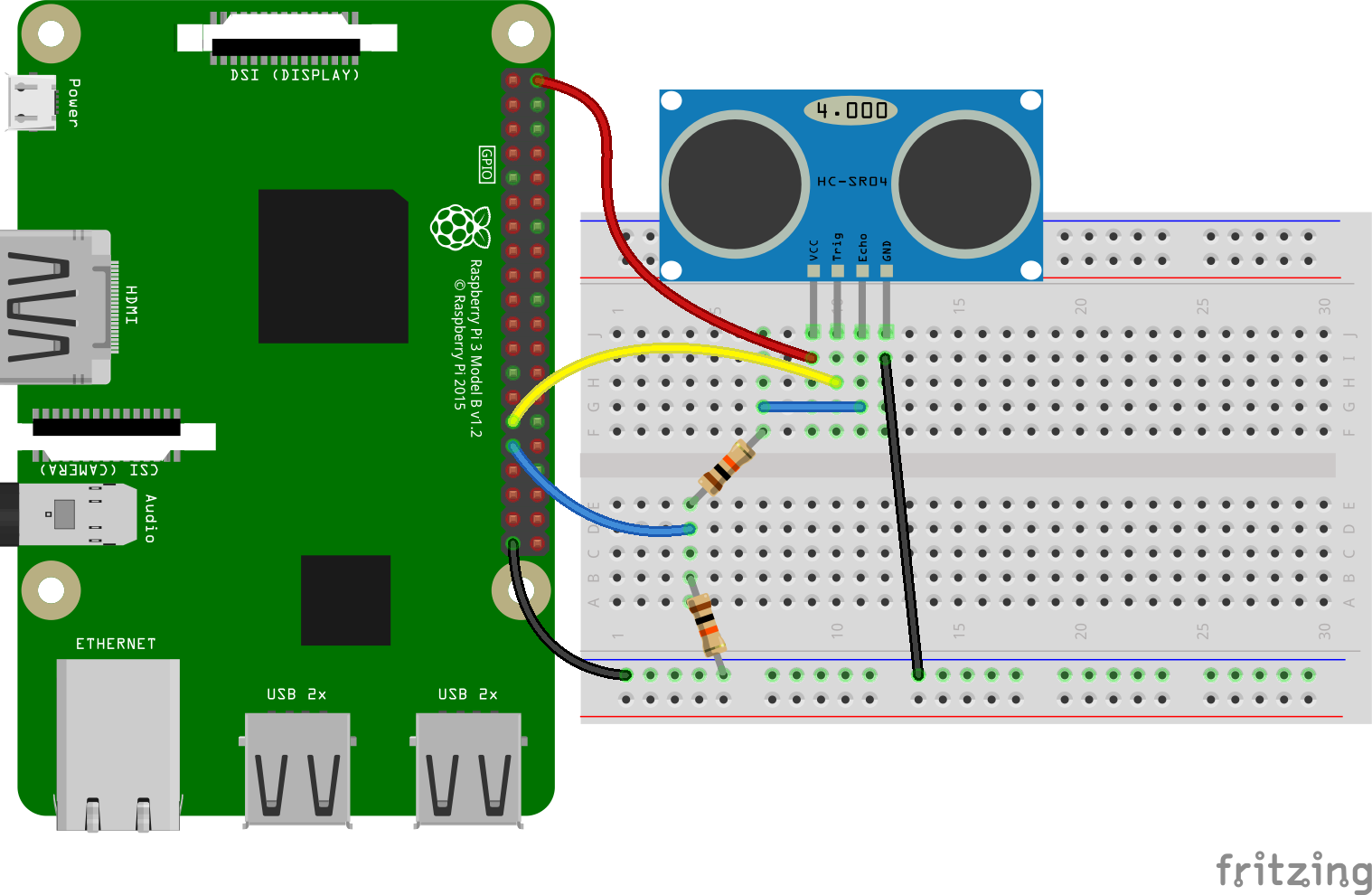 HC-SR04 RasPi Anschluss mit 10k Ohm Widerständen