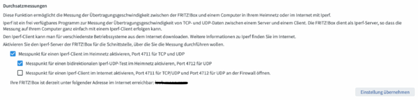 Dann seht ihr den folgenden Abschnitt, in dem ihr den iPerf Server aktivieren könnt.: