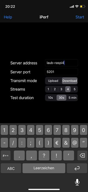 Unter iOS kann man einfach die iPerf App installieren und starten.