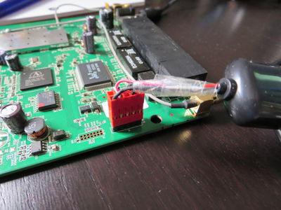 Nachdem der Router geöffnet ist und wir das Konsolen Kabel am WinXP Rechner als Com3 Port am laufen haben, kann es mit dem Router am JTAG (J3) angeschlossen werden: