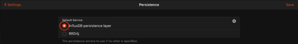 Als letzen Schritt sagen wir openHAB noch die InfluxDB als Standard Persistence zu nutzen.
