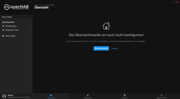 und nun begrüßt uns auch schon das Dashboard von openHAB 4