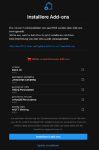 - weitere Add-ons, die ihr benötigt, können aber auch später ohne Weiteres in den Einstellungen nachinstalliert werden