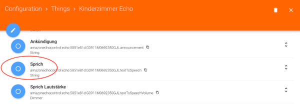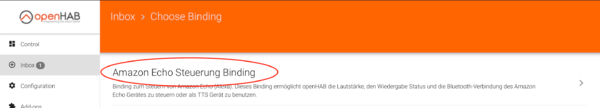 Nun wählen wir unser Amazon Echo Steuerung Binding aus: