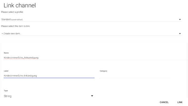 Hierfür einfach eine Item Gruppe erstellen und alle gewünschten Echos zu dieser hinzufügen. Dafür erstellen wir als erstes die Gruppe Echo_Spaek_ALL unter Configuration --> Items --> +