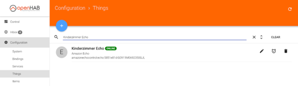 Nun sollte das Thing unter Configuration --> Things verfügbar sein: