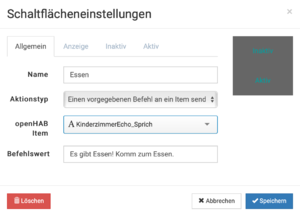 Oder via HABPanel Button Widget eine Benachrichtigung verschicken. Zum Beispiel das es Essen gibt.