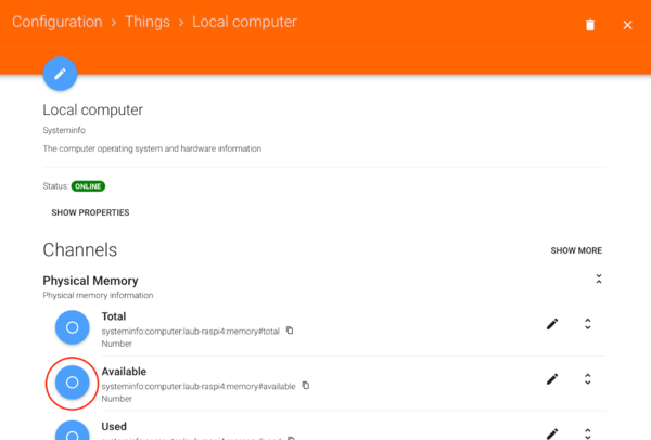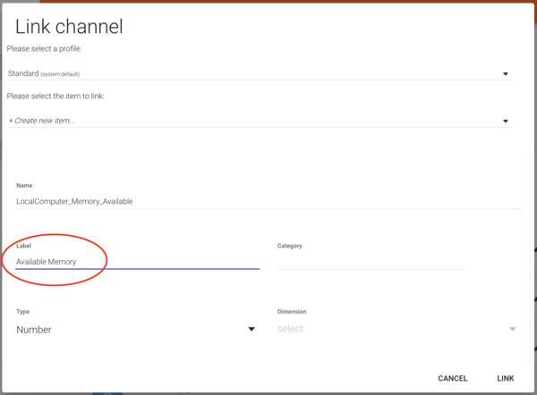Ist das Local Computer Thing angelegt, können wir die Items anlegen. Hier ein Beispiel bebildert: