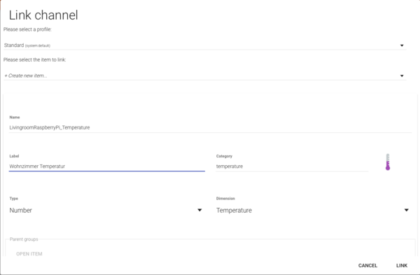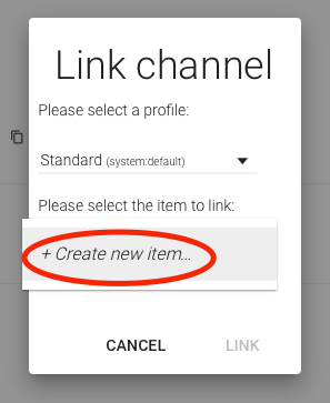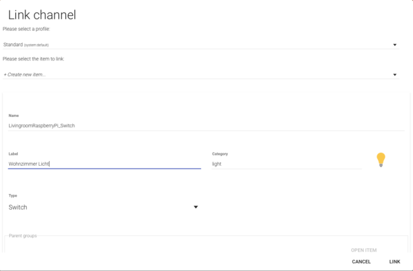Um einen Schalter als Item einzurichten, der den Status ON und OFF versteht, legt man als erstes einen Channel an: