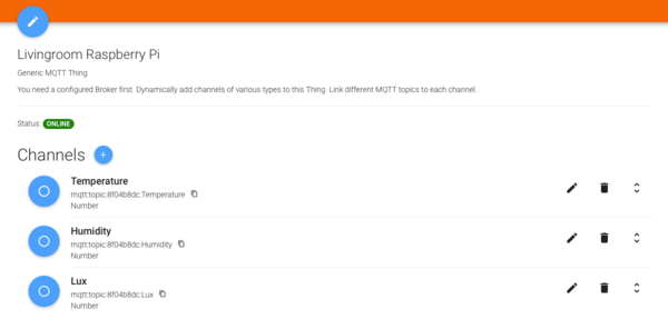 Man kann nun hier beliebig viele MQTT Things anlegen, kann aber einfach eines verwenden und alle Sensoren / Topics hier als eigene Chanels hinterlegen. Der Vorteil, wenn man zum Beispiel über mehrer MQTT Publisher verfügt und für jeden dieser Publisher ein eigenes MQTT Thing anlegt, ist, dass man eine bessere Übersicht bekommt. Ich zeige hier nun wie man ein MQTT Thing samt Chanels anlegt und diesen Chanels dann Items hinzufügt.