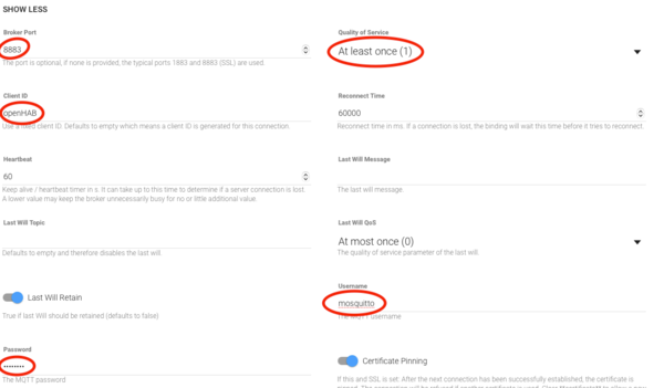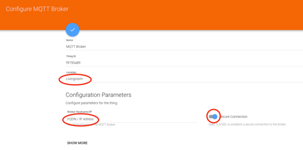 - In unserem Fall, da es ein Secure MQTT Broker aktivieren wir die "Secure Connection"