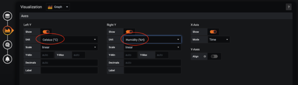 Nun sagen wir noch dass die Luftfeuchtigkeit auf die Y Achse gehört, dafür klicken wir einfach in der Grafiklegende auf die Farbe vor dem Label.