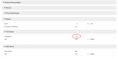 Nach dem ihr das Ganze gespeichert habt, sollte der Wechselrichter via IP / DNS Name und Modbus TCP 502 erreichbar sein.