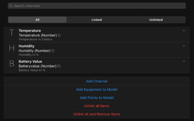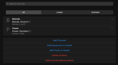 Nachdem wir nun ein Thing erstellt haben, müssen wir noch die Channels einrichten. Dafür gehen wir wieder unter Einstellungen --> Things und suchen unser erstelltes Thing, öffnen dieses und wechseln in den Reiter der Channels. Dort klicken wir auf Add Channel. Nun könnt ihr für alle Werte, die euch interessieren Channels konfigurieren. Ich gehe hier auf ein paar Beispiele ein.