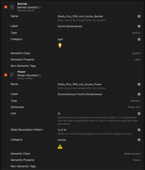 Shelly Plus H&T Thing Konfiguration