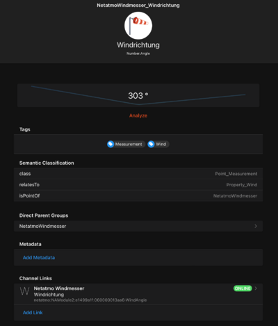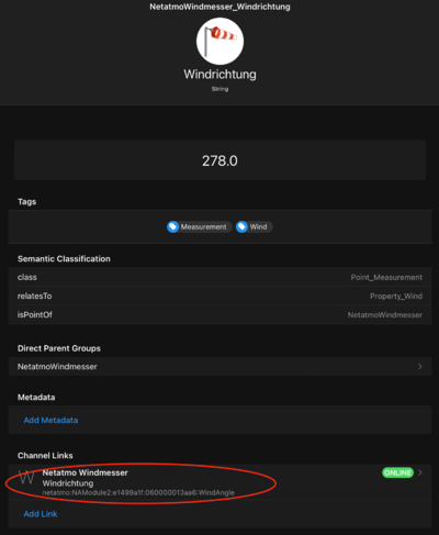 Ein Bereits eingerichtetes openHAB Item, welches die Windrichtung in Grad ausgibt: