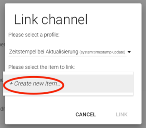 Bei select Item to Link wählen wir dann "Create new item" aus: