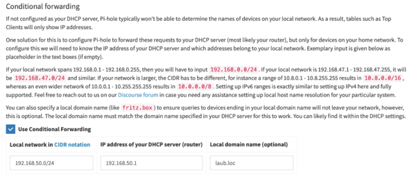 Normal sollte man dem DHCP Server sagen, das als DNS die Pi Hole IP verteilt wird. Dann gehen aber die Internen Namensauflösungen nicht, es sei denn, man biegt dann wieder beim Pi-hole den Upstream DNS auf den Router um. Dafür bringt der Pi-hole direkt eine Option in den Einstellungen bei DNS mit: