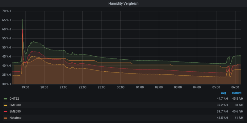 Die Werte habe ich dann an meinen MQTT Broker geschickt, welcher dann via openHAB die Daten an Grafana liefert. Am openHAB ist auch mittels Binding die Netatmo Wetterstation.