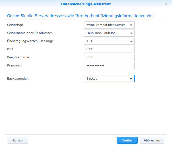 - Servertyp: rsync-kompatibler Server