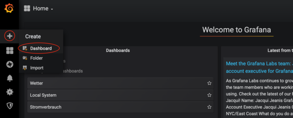 Nun erstellen wir uns zum Test ein neues Dashboard um die Temperatur anzuzeigen.