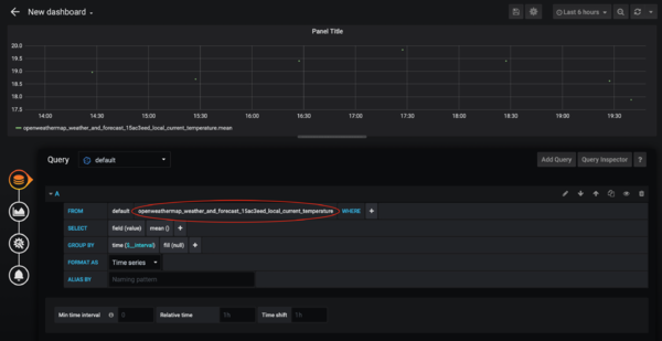 Nun Wähle wir einfach in der FROM Zeile unser gewünschtes Item aus. Ich habe hier einfach mal zum Test die aktuelle OpenWeatherMap Temperatur genommen.
