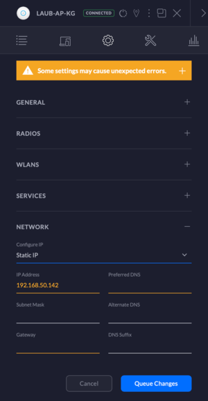 Nun kann an den Access Point Neustarten, nun sollte er die reservierte IP Adresse bekommen haben. Dies kann man in der UI nachprüfen.